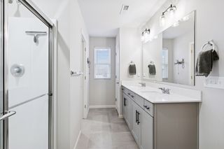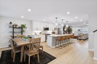 This meticulously maintained townhome, built in 2021, offers 3 bedrooms plus a flexible bonus room, 4 bathrooms, and 2,142 finished square feet of thoughtfully designed living space. The upgraded kitchen is the heart of the home, featuring stainless steel appliances, quartz countertops, a ceramic tile backsplash, soft-close cabinetry, and an impressive 10-foot island. Enhanced with custom window treatments and upgraded light fixtures throughout, the open-concept main level flows seamlessly from the expansive kitchen to the dining area and spacious living room, with direct access to the deck—perfect for everyday living and entertaining alike.