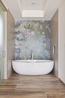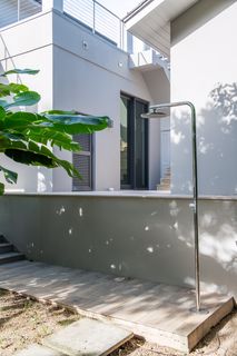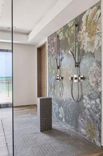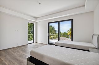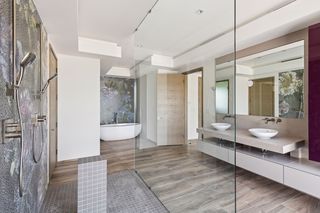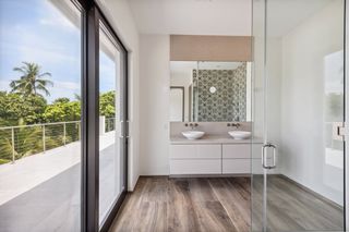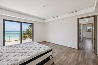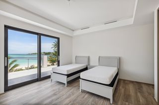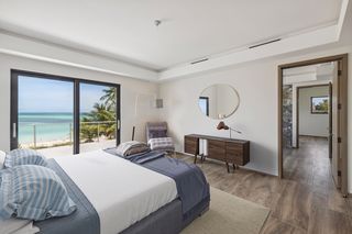 Upstairs is the extensive principal suite with access to the spacious covered balcony with beautiful sea views, a large en suite bathroom and two generous-sized dressing rooms. There are a further three bedrooms suites with en suite bathrooms, walk-in wardrobes and balcony access, as well as a family room on this floor.