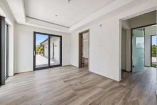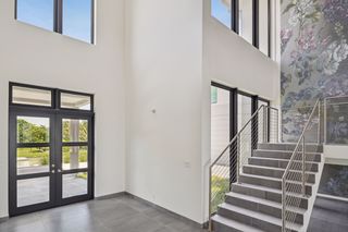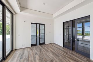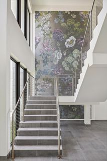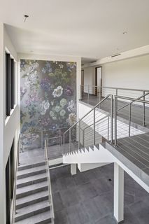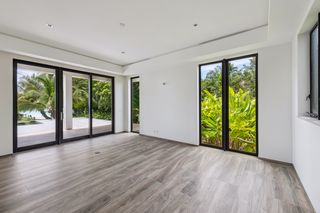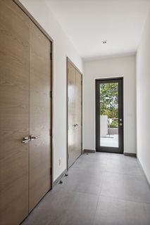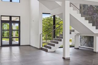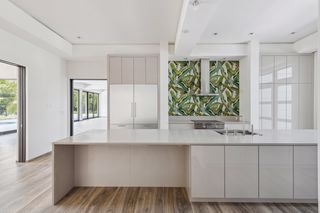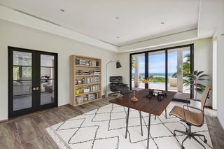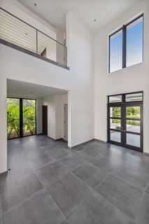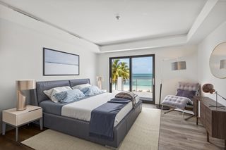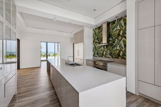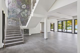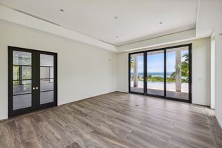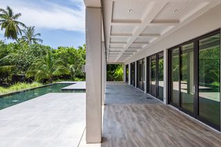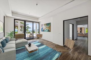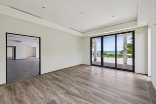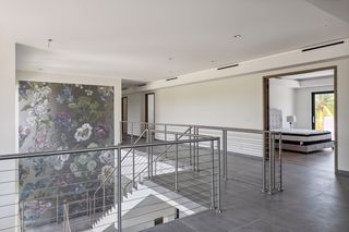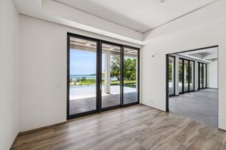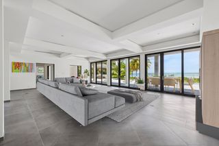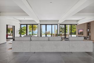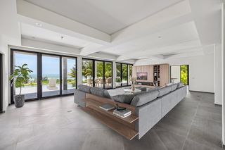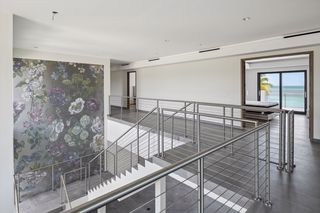 The property entrance opens into a spacious double-height entrance foyer with a statement staircase and is open-plan to the main living room. Floor-to-ceiling windows open out from the living space to the expansive terraces and swimming pool overlooking the gardens and with spectacular views out to the beach and sea beyond.