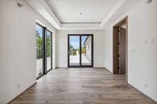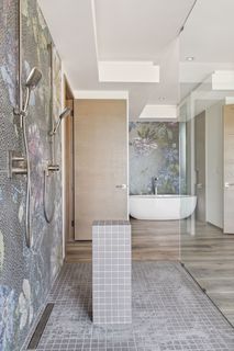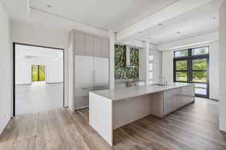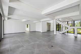 To the right of the living room is the first of two spacious studies, and to the left is the second study, dining room, open plan kitchen with pantry, and hallway leading to the staff studio with an en suite bathroom. There is also a lift, storage area and guest WC accessible from the entrance foyer.