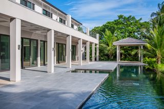 Located in the prestigious gated community of Lyford Cay in Nassau, within a calm and peaceful bay, with approximately 175 feet of beach frontage, is this superb newly built luxury property.
