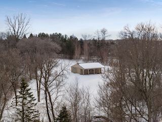 On the market due to business relocation. You do not want to miss the opportunity to own this alluring countryside property/hobby farm! Enjoy year round activities & glorious views on 10+ acres overlooking rolling hills, mature trees, Deer Creek and a produce garden. Plus a 36X32 barn! The updated custom built home features a spacious main floor master & ensuite, laundry room, vaulted ceilings and a kitchen that walks out to the paver patio and charming gazebo. The lower level awaits your personal touch. Come to see in person! Quick close possible.
