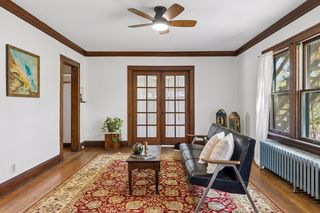 Move-in ready and exceptionally located in Seward neighborhood, this two-unit duplex showcases hardwood floors, rich natural woodwork, and a stunning dining-room stained-glass window. The dining room opens to an updated kitchen with granite counters and a dedicated pantry area for extra storage, plus direct access to the basement with shared laundry facilities. The larger main-floor unit features a spacious living room, a full bathroom, a bedroom, and a sun porch/den with French doors leading to the living room. The upper unit, with its own exterior staircase, offers one bedroom with a walk-in closet, a full bath, and gleaming hardwood floors. A large fully fenced backyard/garden is ideal for relaxing and gardening, with an abundance of native plants and a newer two plus car garage with door access to backyard. Conveniently located near W. River Parkway and about six blocks from the Blue Line Light-Rail station. Close to local restaurants, coffee shops, and Seward Coop. With a little TLC, this home could really shine—a versatile opportunity for homeowners.