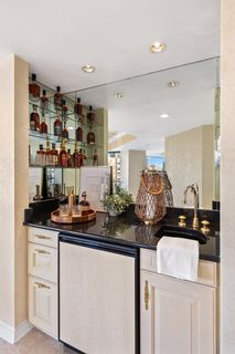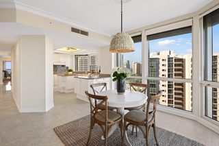 Enjoy your morning coffee watching the sun rise over Venetian Bay. The kitchen, informal dining room and sitting room all face north forming their own cozy wing of the property and offering sweeping views of the bay and city lights. Sliding doors open up to the 27’ wide sunrise terrace. 2 guest suites just down the hall with attached full baths and balcony access.