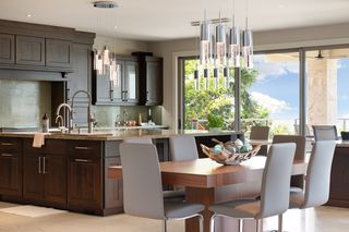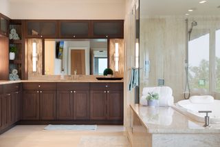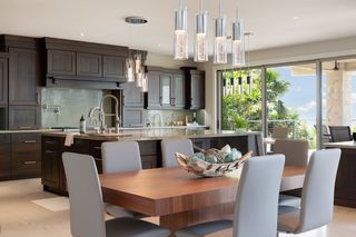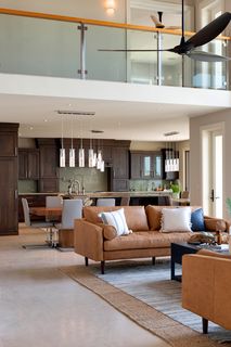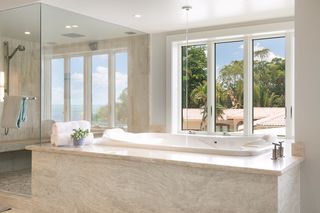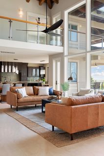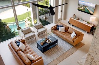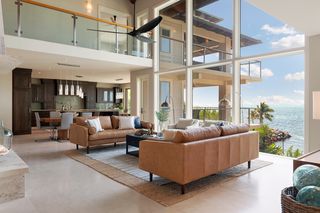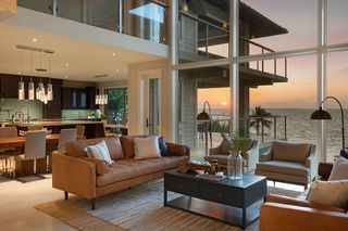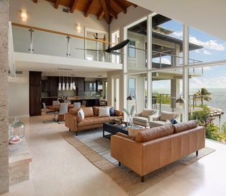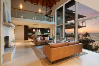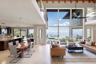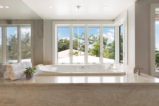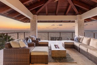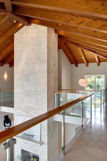 Floor to ceiling, impact resistant, Anderson windows in the living room create a breathtaking first impression. Yellow Alaskan Cedar beams across the ceiling showcase the impeccable attention to design. Gas fireplace with 2 story over mantel adds another statement of grandeur. The gourmet kitchen features enormous center island and stainless steel farm sink, solid maple cabinetry, walk-in pantry and top of the line sub zero appliances. Spanish limestone flooring throughout. Large screen theater room with stadium style seating. Main level bedroom and bath, powder room and office space.
