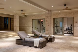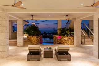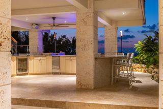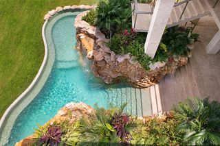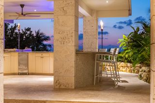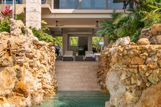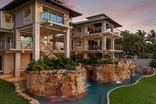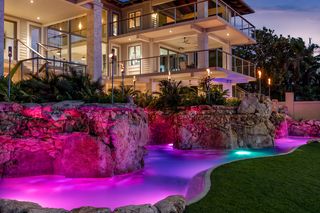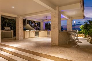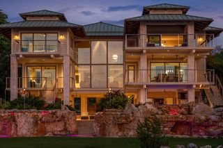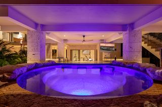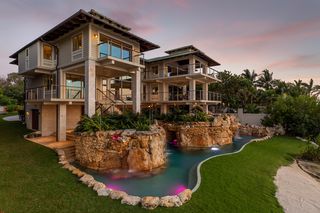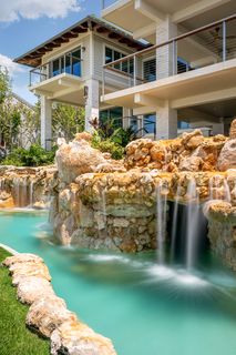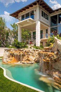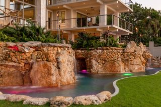 Lower level features exercise room overlooking the water. Poolside bathroom with shower. Additional garage with storage space. Large outdoor bar complete with beverage fridges, ice maker and grilling station. Dive into the custom built pool with under house grotto. Swim through the cave and back to secluded space with sitting bench and outdoor tv. Warm up in the infinity spa with in-water bar stools. Catch fresh Atlantic salmon off the dock while kids play at the beach. Oversized 3 car tuck-under garage.