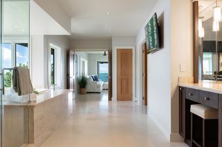 The upstairs master bedroom is other-worldly. You will never want to leave this sensational space to unwind! Spacious layout, drop-down projector and private balcony facing the bay. The master bath is the ultimate oasis featuring multi-head shower system, ceiling filled bath tub and his and her sinks. Roomy walk-in closet. 2 additional guest suites with attached baths across the hall. 2nd floor laundry.