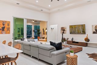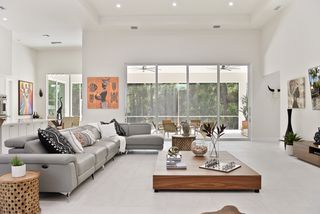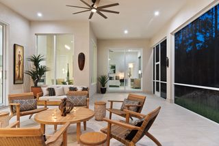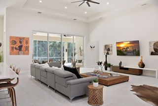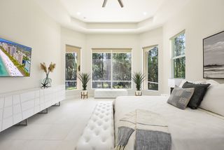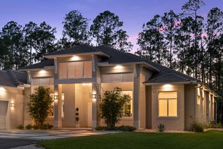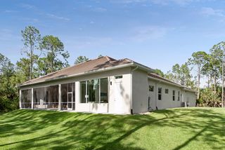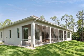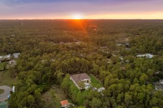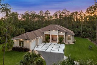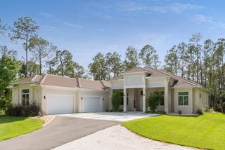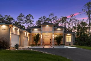 Exquisite 4 bed + den, 4 bath main level living on secluded 2.15 acre lot! Double door entry gives way to wide open floor plan. Tray ceiling in living room adds dimension to the already tall ceilings. Grand center island stretches the length of the kitchen. Quartz counters and top of the line stainless steel appliances! Multiple dining spaces and office space with French door entry complete the spacious living area. A master bedroom that dreams are made of! Picture windows across the west facing wall create a sun-rich space. Double walk-in closets. Stunning master bathroom with his and her sinks, pass through, walk-in shower and separate freestanding tub. Opposite of the master is a secondary master-esqe bedroom with large closet, attached bath and lanai access. Additional bedroom ensuite, 4th bed, gorgeous full guest bath and laundry down the hall. Sliding doors open up to enormous screened-in lanai. Spend the evenings enjoying watching the sunset through the trees. Private, winding driveway. Oversized 4 car garage.