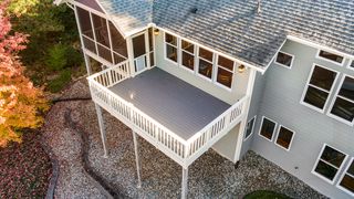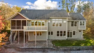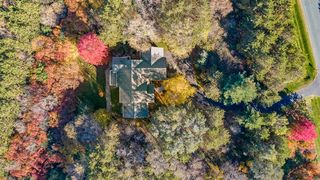 A wooded, winding drive leads to this one-level, executive retreat, perfect for those looking for panoramic treetop views and privacy without the maintenance of a large yard!