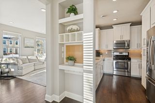 Rarely available end-unit townhome in Maple Grove’s high-demand Central Park neighborhood. Thoughtfully upgraded with the features buyers want most: high ceilings, hardwood floors, upgraded baseboards, gas fireplace, luxury fixtures, upgraded carpet and padding upper level, and energy-efficient LED lighting with dimmers throughout. A show-stopping kitchen designed for both everyday living and entertaining, with ceiling-height white cabinetry, glass front doors with lighting, subway tile backsplash, quartz countertops, under-cabinet lighting, and premium stainless steel appliances. Upper level offers three bedrooms on one level, a versatile bonus room, and access to a private deck. The owner’s suite impresses with vaulted ceilings, walk-in closet with barn door, and a spa-inspired private bath with soaking tub, double-vanity quartz countertop, and separate shower. Enjoy the Relax on your private front porch with peaceful views of the surrounding green space. End-unit homes in this condition and location rarely become available—don’t miss this opportunity.