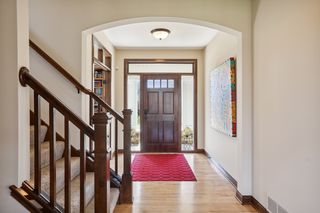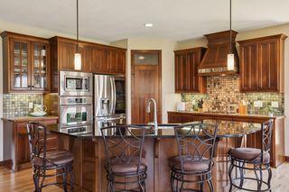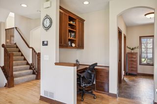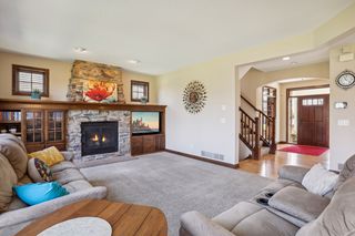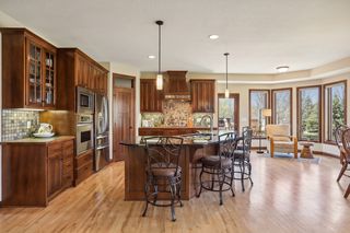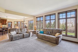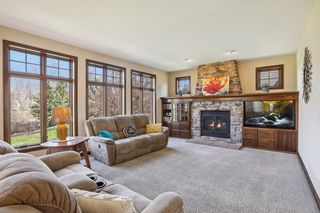 Built by award-winning Hanson Builders, this home sits on a .4 acre lot w/mature trees in back. Custom cabinetry and built-ins throughout the home. Spacious owner's suite with private bath featuring heated floors, separate whirlpool tub, walk-in shower & large walk-in closet. 3 total beds and laundry upstairs. Walls of windows fill the main floor with natural light and offer a fantastic view of the fully-fenced back yard. Head downstairs to the finished walkout lower level with wet bar, recently-updated gas fireplace, and 4th bedroom and bath.