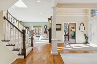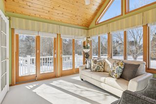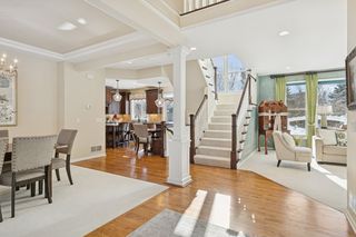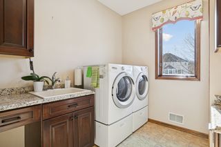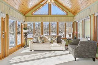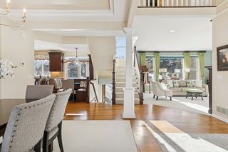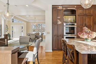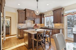 Perfectly positioned on a secluded .63-acre lot at the end of a peaceful cul-de-sac, this distinguished Kootenia-built home offers an exceptional level of craftsmanship, timeless elegance, and natural light.Just off the grand two-story foyer, a richly appointed den exudes old-world ambiance with a dramatic medallion light fixture and two-sided gas fireplace, while the adjacent living room showcases Venetian plaster and custom woodwork surrounding its fireplace. Creating a comfortable atmosphere for both everyday living and entertaining, the open layout continues into a spacious formal dining room that flows seamlessly into the updated gourmet kitchen. Designed for both beauty and function, this impressive space features warm Lyptus cabinetry and charming banquette seating- an inviting spot for guests to gather with a glass of wine while meals are prepared. Also appreciate a versatile, main-level laundry room with desirable built-ins to organize and plan your daily tasks. Upstairs, you’ll find four bedrooms, including the expansive Owner’s suite with a vaulted ceiling and oversized walk-in closet, and two luxuriously updated baths with granite counters and tiled showers, not to mention an antique dresser vanity and marble tile in the full bath. The lower level is a private oasis for guests or extended living space, featuring another gas fireplace in a spacious family room, ¾ bath, two bonus rooms or potentials bedrooms with designer touches, and abundant storage. Outside, the amenities are exquisite with a vaulted sunroom that brings the outdoors in with its windows on three sides and adjoining balcony, a large paver patio where you can dine alfresco beneath the pergola and stars, and a maintenance-free deck overlooking the sweeping, park-like backyard with mature trees, gorgeous flower beds, and ample space for recreation or a future pool. Centrally located with quick access to shopping, dining, golf courses, and metro freeways, plus walking distance to Colby Lake trails and parks, this wonderfully unique home offers an exceptional lifestyle both inside and out in the heart of Woodbury.