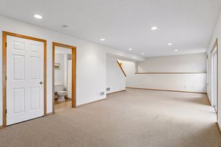 The finished walkout level offers exceptional flexibility, featuring custom built-in shelving and an additional bathroom, with space ready for an optional fourth bedroom.