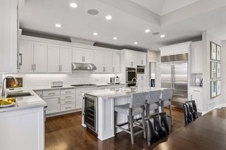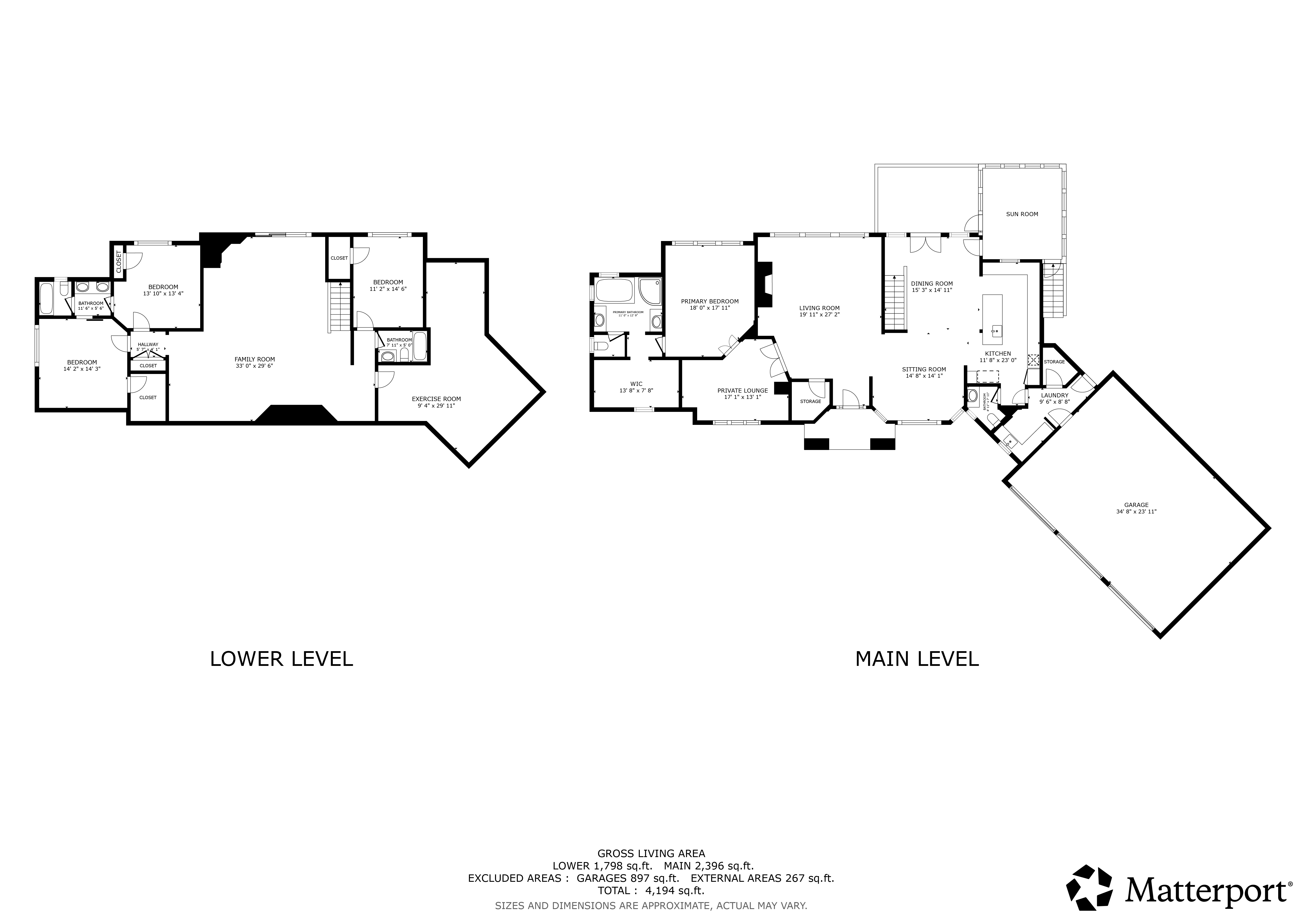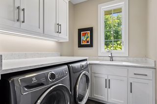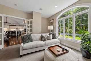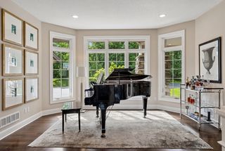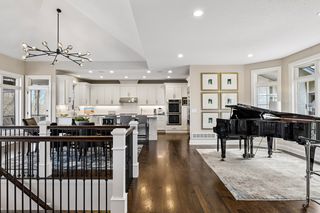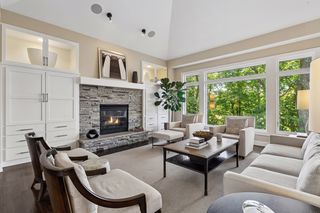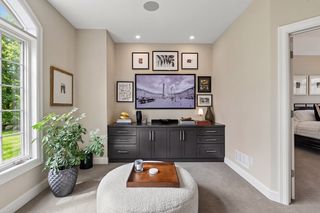 Primary suite with private lounge, walk-in closet and luxury bath. Walkout lower-level features family room with fireplace, game area, three additional bedrooms with adjacent baths and spacious storage room currently used as an exercise space.