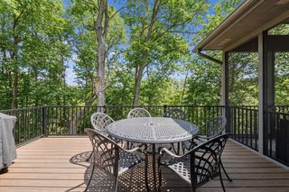 Completely updated and designed for modern, main-level living, this home features an open floor plan with walls of windows that bring the outdoors in. Crisp white interior complemented by vaulted ceilings, hardwood floors and an open gathering space. Stunning center-island kitchen steps out to three-season porch and deck overlooking the lawn and surrounding woods.