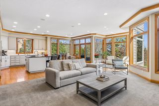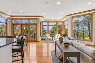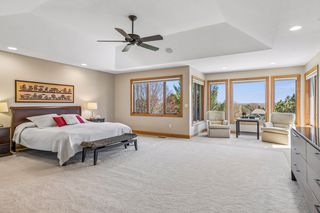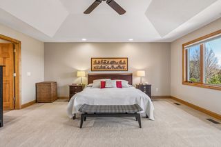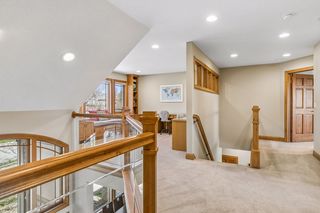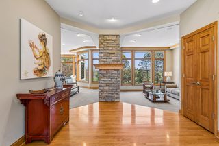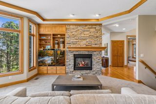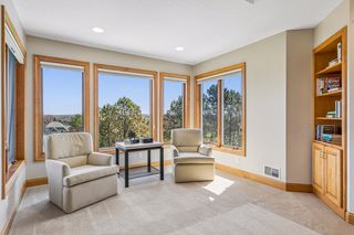 Step into a home that feels as personal as it is impressive, where refined prairie-style architecture meets an elevated lifestyle overlooking the fifth hole of Prestwick Golf Club in the heart of Wedgewood Heights. From the moment you enter, the grand two-story foyer sets the tone with its sweeping sense of space, leading you into a thoughtfully designed open-concept main level. Every space invites connection and comfort—from the formal dining room with its custom ceiling detail to the private office framed by French doors and tailored built-ins, offering a quiet retreat for work or study. At the center of the home, the gourmet kitchen blends beauty and function with professionally finished cabinetry, Cambria countertops, and high-end appliances, all flowing seamlessly into the informal dining area and sunlit living spaces. A two-sided, stone surround gas fireplace creates warmth and ambiance between the living and great rooms, while walls of windows draw in soft natural light and tranquil views of the golf course beyond. Just outside, the wrap-around deck becomes a natural extension of the home—ideal for morning coffee, evening wine, or simply taking in the tranquil, uninterrupted scenery. Upstairs, the generous Owner’s suite serves as a true retreat, complete with a cozy sitting area and nicely updated en suite, while two additional bedrooms share a Jack & Jill bath, and the expansive loft offers a versatile space with extensive built-ins. The walkout lower level transforms the home into an entertainer’s dream and a private escape all at once. Here, a spacious family room with a gas fireplace and built-in entertainment center creates the perfect setting for movie nights or game days with an adjacent wet bar that’s fully equipped. Plus, an exercise room with a spa-like sauna offers a dedicated space to recharge, and two bedrooms and a walk-through bath provide comfortable accommodations for guests. Outside, the backyard unfolds into a truly exceptional oasis designed for both relaxation and entertaining. Surrounded by mature trees and lush landscaping, the fenced-in yard offers rare privacy while still capturing sweeping golf course views; and the in-ground pool becomes the centerpiece of summer living, complemented by a stamped concrete patio and spa that adds year-round enjoyment. Whether hosting lively poolside gatherings, enjoying quiet mornings on the deck, or taking in the serene backdrop, this outdoor space delivers a lifestyle that feels luxurious and intimate. Set on a peaceful cul-de-sac in one of the area’s most sought-after neighborhoods, this home offers not just exquisite design, but a way of living—where nature, privacy, and community come together effortlessly.