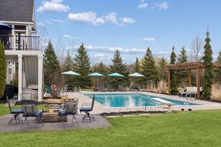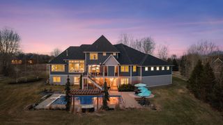 From the moment you arrive, this home welcomes you into a lifestyle defined by comfort, connection, and understated luxury. Set on 2.5 private, tree-lined acres in the prestigious Loramere neighborhood, the setting feels like a secluded retreat while still offering convenient access to your daily needs. Every detail has been thoughtfully designed to elevate both everyday living and unforgettable entertaining. Inside, an open and airy layout unfolds, anchored by a breathtaking great room where a dramatic coffered ceiling, floor-to-ceiling windows, and a warm gas fireplace create a space that feels both grand and inviting. Natural light pours in, framing serene views of the treed backyard and bringing a sense of calm to the entire main level. The gourmet kitchen is truly the heart of the home, featuring crisp white cabinetry, a generous center island, and walk-in and butler’s pantries—perfect for everything from casual mornings to elegant gatherings. Whether enjoying meals in the informal dining area with direct access to the deck or hosting in the formal dining room, every occasion feels elevated. A private office behind French doors provides a quiet workspace, while a fully equipped laundry room and thoughtfully designed mudroom with a drop station and outfitted walk-in closet off the four-car heated garage bring ease to everyday routines. The Owner’s suite is a true sanctuary, complete with a tray ceiling, walk-in closet, and a spa-like bath featuring dual vanities, a soaking tub, and tiled rainfall shower. Upstairs, three spacious bedrooms with walk-in closets and en suite baths offer comfort and privacy, while a versatile loft creates the ideal hangout or study space, and a charming, vaulted princess suite with its own loft adds a touch of whimsy. The walkout lower level is designed for both lively entertaining and everyday wellness, seamlessly blending recreation and relaxation. Gather around the stone surround gas fireplace in the family room, host effortlessly at the pub-style wet bar, or enjoy evenings in the game and billiards areas. The dedicated exercise room offers a convenient space for daily workouts, while the impressive sport court invites year-round activity for basketball, training, or simply burning off energy, and the fifth bedroom suite is fitting for guests. Outdoors, resort-style living awaits—from the in-ground pool and expansive concrete patios to the built-in fire pit and hot tub—all surrounded by mature landscaping. Plus, a vaulted, pine-lined screened porch and maintenance-free deck offer sweeping views of the tranquil landscape. With quick access to I-94 and close proximity to downtown Stillwater, shopping, and dining, this home offers everything you could ask for in a peaceful, haven-like setting.