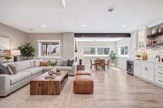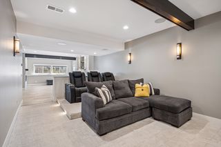 The lower level is a certified showstopper! Elevated design elements host a dedicated home theater area, recreation zone (ping-pong/billiards/etc.), lounge with fireplace, and wet bar. The 5th bedroom and luxe ¾ bath round out the space.
