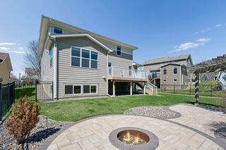 Stepping outside onto the expansive maintenance-free deck feels like you’re living above it all, with plenty of room to grill and gather. The backyard is fully fenced and includes a newer hardscape patio with fire pit and dining space accented by a custom wood pergola.