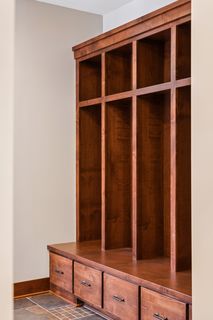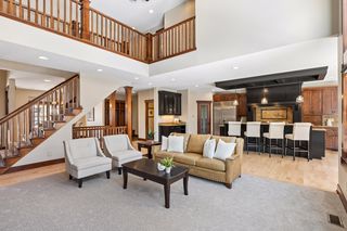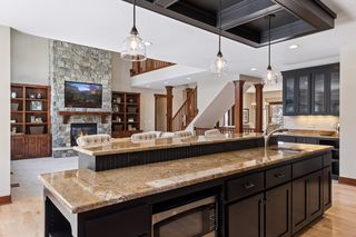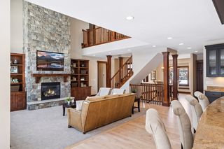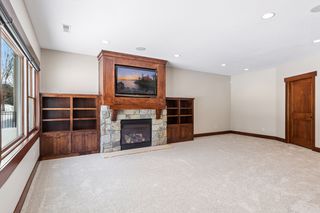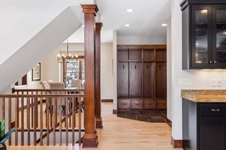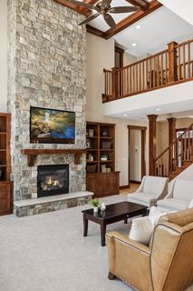 Nestled in a peaceful cul-de-sac neighborhood, this timeless Craftsman home blends elegant design, custom craftsmanship, and serene natural surroundings. Abutting a private, tree-lined pond, the property offers a peaceful water backdrop and rare sense of privacy that makes the setting feel like a retreat. Inside, the open concept layout creates expansive, yet comfortable living spaces designed for both everyday living and entertaining. The two-story great room features a dramatic coffered ceiling, impressive gas fireplace with natural stone to the ceiling, and a wall of oversized windows that fill the home with natural light while showcasing tranquil backyard views. Refinished maple and oak hardwood floors, birch cabinetry, and extensive built-ins throughout highlight the home’s exceptional millwork and architectural detail that make the home feel warm and distinctive. The spacious gourmet kitchen is both stylish and functional, featuring rich cabinetry with black accents, a massive center island, walk-in pantry, and professional appliances, while a formal dining room offers an elegant setting for gatherings. Also sure to please is the main-level Owner’s suite with all the expected luxuries, including a spa-like en suite with outfitted walk-in closet, as well as a mudroom with built-in lockers making daily organization a breeze. Upstairs, an open catwalk overlooks the great room and leads to three bedrooms and two full baths, along with a desirable laundry room and huge bonus room with endless options of use. Creating the perfect extension of the home’s entertaining spaces, the lower level features a cozy family room with stone surround gas fireplace, walk-behind wet bar with game area, and a versatile fifth bedroom/office, ¾ bath, and bonus room that provide flexibility for guests, hobbies, or additional workspace. And just outside the walkout, you’ll find a backyard oasis that’s sure to be one of your favorite places to unwind and entertain with an in-ground pool ready for summer pool parties, spacious pool deck with hot tub for relaxing evenings, and a maintenance-free deck that overlooks the lush, private landscape and tranquil pond with frequent wildlife sightings. Conveniently located just minutes from I-94, shopping, and top-rated East Ridge schools, this home is truly move-in ready with extensive improvements inside and out- including all new paint, carpet, siding, and roof- offering comfort, beauty, and peace of mind for years to come.