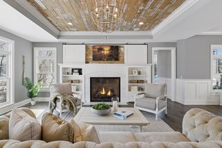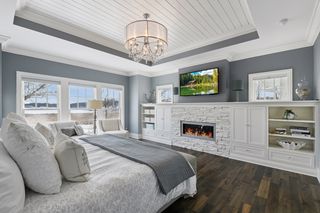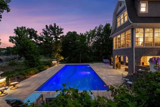 Shingle-style Lake Minnetonka home set on over an acre with 156 feet of lakeshore and three private dock slips in The Cove community. Crisp white interior with enameled millwork and custom finishes throughout. Panoramic views from nearly every room. Main level features include open great room design, gourmet kitchen with separate support space, private study and lakeside three+ season porch with fireplace overlooking the resort-style pool.