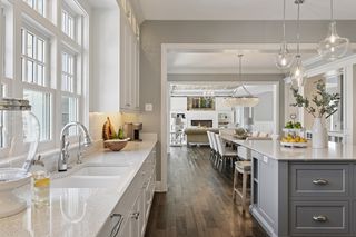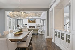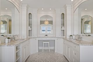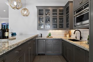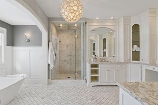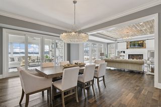 Walkout lower level includes a spacious family room with bar, additional bedroom and an oversized indoor multi-sport court. Entertain in style on the lakeside pool and patio with extensive outdoor kitchen, sun-filled gathering areas, beautiful landscaping and panoramic views of the water.