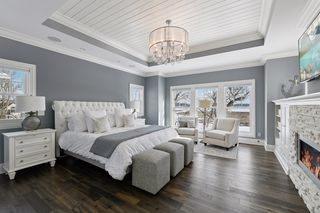 Upper level offers a luxurious primary suite with fireplace and spa-like bath, plus three additional ensuite bedrooms and separate lounge space.