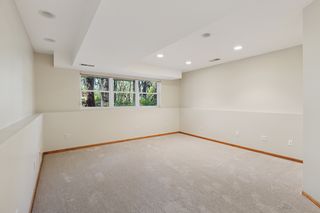 Downstairs, the spacious family room provides room for media, games, or fitness. A third bedroom, three-quarter bath, and ample storage/workshop space add flexibility. The attached two-car garage includes built-in cabinets for extra storage.
