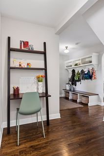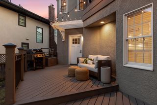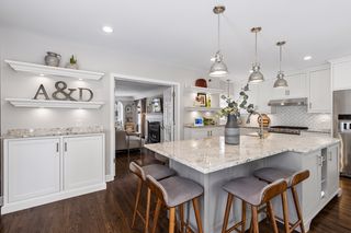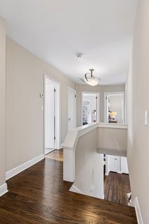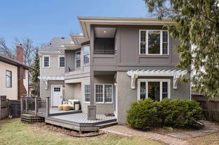 The light-filled main level features a living room with gas fireplace, dining room, office, updated powder bath, custom mudroom, and a Trex deck overlooking the fenced in backyard with a two-car detached garage and newer concrete driveway. The immaculate upper level features four bedrooms with custom closets, laundry, an additional full bathroom, and the spacious primary suite with heated floor and balcony. The finished lower level adds a open family room, three quarter bathroom, and a second laundry / exercise room with generous storage throughout.