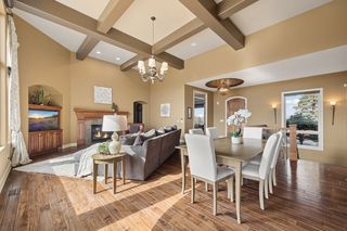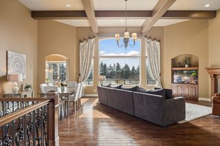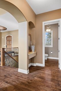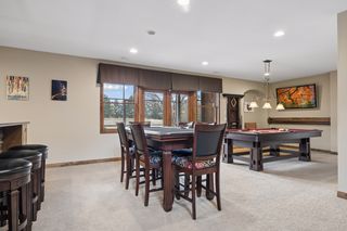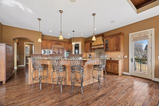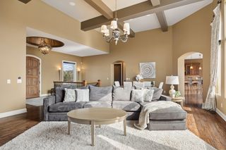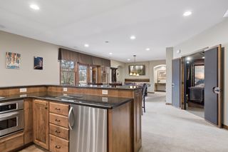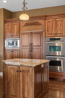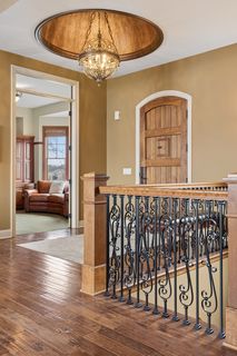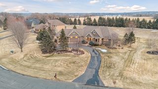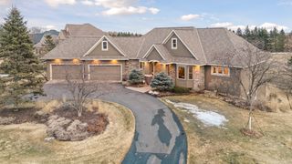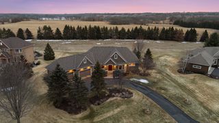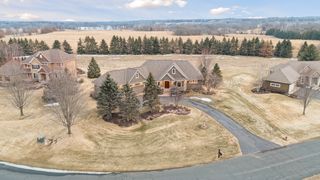 Expertly crafted by Kootenia Homes, this unprecedented residence is set within the prestigious Farms of Lake Elmo, a highly sought-after neighborhood known for its magnificent estate properties and serene, private setting. From the moment you arrive, the home’s architectural elegance is unmistakable. An arched wood front door welcomes you into a grand foyer, where a globe chandelier glows beneath one of several dramatic dome ceiling treatments found throughout. Rich hand-scraped walnut flooring flows seamlessly into the two-story great room and dining area, where a striking coffered ceiling with massive beams creates a bold architectural statement, and its wall of oversized windows frames tranquil, south-facing views of Lake Elmo Park Reserve while filling the space with natural light. Just beyond, the gourmet kitchen is designed to inspire, offering abundant cherry cabinetry and granite countertops, functional center islands, professional appliances including a warming drawer, walk-in pantry, and handy grill deck. Elegant pendant lighting highlights the workspace, while a beautifully painted dome ceiling crowns the breakfast nook, and the adjoining hearth room offers a warm and inviting retreat as you relax beside the gas fireplace. Designed for convenient main-level living, the luxurious Owner’s suite with private deck access offers breathtaking park views and a coved ceiling that enhances the room’s openness, plus its spa-inspired en suite delivers all the expected luxuries, including a walk-in closet with fantastic organization. Also appreciate a stately office with custom built-ins and the conveniently located laundry room, powder room, and fully equipped mudroom just off the four-car attached garage that’s outfitted with cabinets, a sink, and 30+ feet of built-in storage shelving. The walkout lower level is equally impressive and perfectly suited for entertaining, featuring a lavish, walk-behind wet bar with bonus appliances, including an ice maker and microwave, next to a generous billiards area and enviable home theater enveloped by acoustic sound paneling with LED lighting. Three additional bedrooms with walk-in closets and two baths provide comfortable accommodations for other household members and guests; and a craft room, exercise room, and cozy screened porch overlooking the expansive backyard further enhance the home’s exceptional livability. Thoughtfully designed and impeccably executed, this remarkable residence offers timeless luxury and ultimate privacy in one of Lake Elmo’s most distinguished communities.