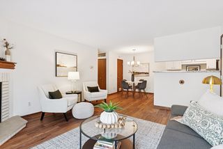 The open floor plan is accented with new easy-care flooring extending from the living room to the hallway and baths for continuity of design. Gather with family and friends in front of the wood-burning brick fireplace in the living room to catch up over the events of the day. Sliders lead to a private patio where you can relax with your morning coffee. The dining room is steps away, where you’ll find attractive overhead lighting and luxury vinyl plank flooring.