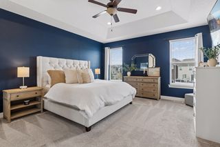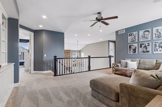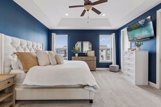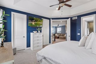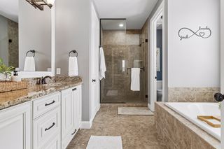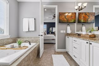 An open staircase overlooks the great room and leads to a spacious upper-level loft/family room. Upstairs, you’ll find four bedrooms, including a luxurious owner’s suite with a spa-like bath, separate soaking tub, and two walk-in closets, along with a private junior suite featuring its own ensuite bath.