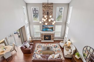 Charming curb appeal and a welcoming front porch welcome you inside to a sun-filled, two-story great room with cozy gas fireplace. Open concept gourmet kitchen featuring stainless steel appliances, granite countertops, a large center island, and a walk-in pantry, with both formal and informal dining spaces ideal for everyday living and entertaining. The main level offers exceptional versatility with a private office, mudroom, and convenient main-level laundry.