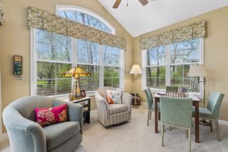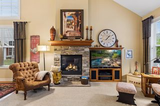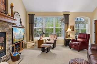 Well-maintained villa offering 3 bedrooms + loft, 3 bathrooms, and 2,700+ finished square feet with true main-level living. The main floor features a spacious great room with vaulted ceilings and a stone fireplace, hardwood floors, and a functional layout that includes a sunroom, dining area, and well-appointed kitchen. The primary suite is conveniently located on the main level with in-floor heat in the bathroom, along with a second bedroom, mudroom, and access to the patio and porch—ideal for everyday comfort and ease.