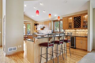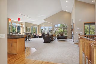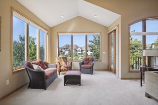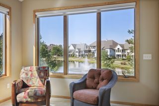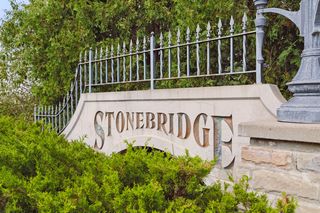 Behind the private gates is the most sought after floor plan in Stonebridge! Through the front door you are greeted by walls of windows, soaring ceilings & unlimited potential! Main level has large foyer with hardwood floors, spacious eat-in kitchen with center island & breakfast bar. Open dining room leads to family room with 16 foot ceilings, gas fireplace, with pond & sunset views. Sunroom leads to the deck with gas grill & access to lower level patio. Primary suite has fountain views, vaulted ceiling, large walk-in closet, separate tub & shower, dual sinks with direct access to laundry & additional main level 3/4 bath. Walkout lower level is open with tall ceilings, in floor heat, two generously sized bedrooms, full bath & significant storage with direct access from the 3 car garage with brand new doors. Meticulously maintained home with newer water heater.