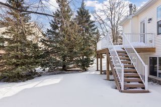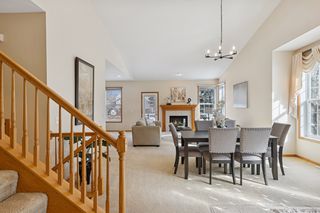 Experience the perfect blend of comfort, space, and privacy in this beautifully designed, end-unit townhome. Surrounded by tall, mature trees and overlooking peaceful green space, this corner lot offers a rare sense of seclusion while still keeping you close to everything you need. Step inside and enjoy the ease of convenient main-level living, highlighted by a stunning vaulted ceiling that carries through the open living and dining area. The living room centers around a cozy gas fireplace that’s perfect for relaxing evenings at home, while abundant windows welcome natural light, creating a warm atmosphere throughout. Just steps away, the spacious Owner’s suite offers a private retreat with a full en suite, featuring a whirlpool tub, separate shower, double vanity, and oversized walk-in closet. The thoughtfully designed, eat-in kitchen is as functional as it is inviting, featuring white cabinetry, a granite center island, desirable pantry closet, and adjacent laundry room for everyday convenience. Upstairs, you’ll find even more room to spread out with a generous loft space, ideal for a home office, hobby or play space, along with a comfortable bedroom and full bath. The lower level expands your options further with its large family/recreation room, third bedroom, ¾ bath, and a bonus storage room to keep everything organized. Outside, enjoy peaceful mornings or evening sunsets on the maintenance-free deck overlooking the lush green space, as well as a two-car attached garage. As an HOA-maintained property, this home delivers low-maintenance living without sacrificing space or privacy. Located within walking distance to parks and schools and just minutes from grocery, retail, and everyday amenities, this home truly offers the best of both tranquility and convenience. If you’ve been searching for a spacious floor plan, private setting, and effortless main-level living in a prime location, this home checks every box.