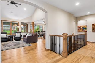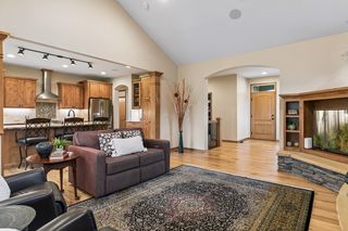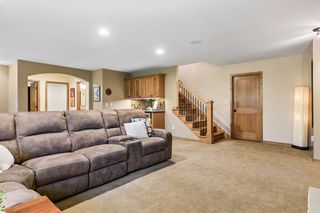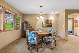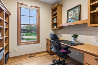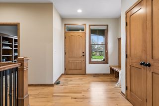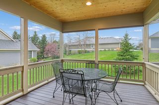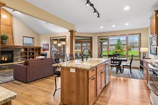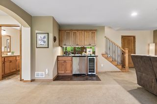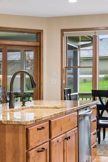 Comfort and convenience come together in this thoughtfully designed home, where custom craftsmanship, warm finishes, and seamless spaces create an effortless everyday experience. Hickory hardwood floors set the tone across the open-concept main level, where a vaulted great room draws you in with its striking stone-surround gas fireplace perfectly framed by a raised hearth, custom wood mantle to the ceiling, and built-ins that anchor the space. Plus, lookout windows allow warm sunlight to pour in, creating an inviting place to gather or unwind, while the adjacent kitchen blends function and style with knotty alder cabinetry, granite countertops, and a large center island that naturally becomes the heart of the home. Just beyond, the informal dining area opens to a screened-in porch and deck, both with maintenance-free decking, extending the living space outdoors with ease. Tucked just off the main living area, a private office with pocket doors and a built-in workstation offers a quiet place to focus without feeling removed from the home’s natural rhythm. The Owner’s suite is equally well integrated, providing a comfortable retreat with a spacious walk-in closet and a ¾ en suite featuring dual granite vanities and a walk-in, tile surround shower. Everyday convenience is thoughtfully woven in, from the built-in hall trees and coat closets in the foyer and mudroom to the handy powder room and fully equipped laundry room with walk-through connection to the master closet. The lower level continues the home’s cohesive feel, offering a spacious family room centered around a second stone-surround gas fireplace and built-in entertainment center. From there, the space transitions easily into a flexible game area and a wet bar complete with beverage and wine fridges, ideal for entertaining or relaxing evenings at home. Two additional bedrooms, including one with a walk-in closet and rubber flooring currently used as an exercise room, sit alongside a ¾ bath, while lookout windows throughout keep the entire level bright with natural light. Quality-built by Pratt Homes, the Craftsman-style curb appeal is complemented by mature trees, lush landscaping, and a three-car, side-loading garage. With HOA-provided lawn care and snow removal and quick access to the impressive Dancing Waters amenities, including an outdoor pool, sport courts, trails and more, daily living is as low-maintenance as it is enjoyable, all just minutes from all that Woodbury has to offer and convenient access to I-94.