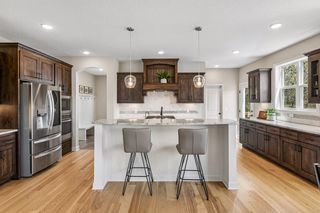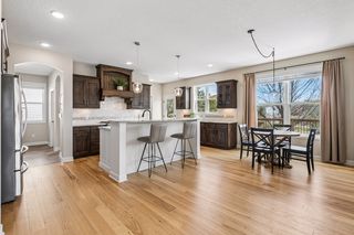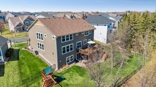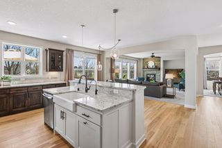 Welcome to this exceptional two-story home in the highly sought-after Enclave neighborhood of Medina, within the award-winning Wayzata School District. Built in 2017 and meticulously maintained, this residence offers a refined blend of timeless design, modern functionality, and elevated everyday living. Set on a beautifully landscaped .26-acre lot, the home features a light-filled interior with expansive windows and beautiful finishes throughout. The open-concept main level is ideal for both daily living and entertaining, highlighted by a spacious family room with a fireplace and scenic backyard and pond views. The gourmet kitchen is beautifully appointed with a center island, custom cabinetry, granite countertops, stainless steel appliances, walk-in pantry, and informal dining area, all seamlessly connected to the main living spaces. Living room, two story dining room, a private office, powder bath, and a well-designed mudroom complete the main level. Upstairs, four generously sized bedrooms include a serene primary suite with a box-vault ceiling, walk-in closet, and spa-like bath with soaking tub, tiled shower, and dual vanities. A convenient upper-level laundry room enhances everyday living. The walkout lower level is designed for entertaining and relaxation, featuring a large family room with fireplace, wet bar, game area, fifth bedroom, 3/4 bath, and ample storage. Outdoor living spaces include a large deck and paver patio overlooking the fenced backyard and tranquil pond setting. Additional highlights include hardwood floors, three-car garage, irrigation system, professional landscaping, and much more. Residents enjoy access to neighborhood amenities including a pool and clubhouse, along with nearby parks, trails, and easy access to Wayzata, Plymouth, and downtown Minneapolis. An exceptional opportunity in one of Medina’s premier communities.