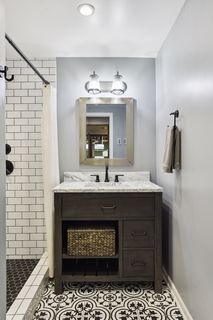 ¾ BATHROOM REMODEL FEATURES WALK-IN TILE SHOWER, HEATED FLOOR, AND GRANITE VANITY