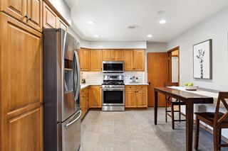 KITCHEN REMODEL FEATURES WOOD CABINETS, GRANITE COUNTERS, TILE FLOOR & BACKSPLASH, EXTRA LARGE/DEEP UNDERMOUNT SINK WITH DISPOSAL, AND RECESSED LIGHTING – SAMSUNG STAINLESS STEEL APPLIANCES WITH 5-BURNER GAS RANGE, REFRIGERATOR WITH WATER & ICE DISPENSER AND BOTTOM PULL-OUT FREEZER, DISHWASHER, AND MICROWAVE