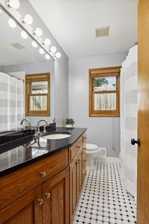 MAIN LEVEL FULL BATH UPDATED WITH GRANITE COUNTERS AND TILE FLOORING