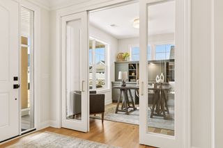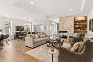 This luxurious patio home by Wooddale Builders offers exceptional quality, thoughtful design, and the ease of all living facilities on one level. With 2,277 finished square feet, two bedrooms, two bathrooms, and a heated three-car garage, the open floor plan is ideal for both comfortable daily living and entertaining. The gourmet kitchen is beautifully appointed with quartz countertops, custom cabinetry, stainless steel appliances, and a walk-in designer pantry, flowing seamlessly into the great room featuring 10-foot ceilings and a striking three-sided gas fireplace. The adjoining four-season porch and dinette with patio doors to a charming three-season porch provide inviting spaces to relax and enjoy the surrounding views. The primary suite serves as a private retreat, complete with a spa-like bath featuring heated floors, a ceramic tiled shower, makeup counter, and a designer walk-in closet. Additional highlights include a study with glass by-pass doors, a second bedroom with walk-in closet, a well-designed mudroom with custom cabinetry, bench, and dual closets, plus a second full bath with ceramic tile flooring and tub/shower. A large storage closet off the mudroom adds everyday convenience. Located in North Oaks, residents enjoy access to miles of scenic trails, beach access, playgrounds, and East and West Recreation Centers—making this an exceptional opportunity to experience luxury living in a vibrant community.