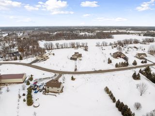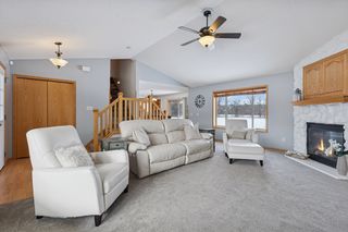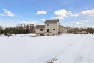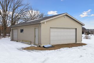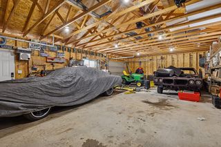 An exceptional opportunity! Multiple buildings with tons of garage space, set on 2.69 acres, with privacy, and a beautiful home! Even a long tree-lined driveway! Home is a modified two-story with a finished walkout lower level. Open concept floor plan with vaulted ceilings fill the home with natural light! Three bedrooms up and one down, plus a main level office with glass door. The primary suite has a large walk-in closet and private full bathroom with lots of countertop space. Kitchen features stainless steel appliances, gas range, center island, tile backsplash, and a walk-in pantry. NEW: roof, air conditioner, carpeting, ceiling fans, and more! Appreciate having a gas fireplace, main level laundry with second hookup in lower level, stairway lights, maintenance-free siding, gutters, irrigation system, and back concrete patio. Quiet neighborhood, excellent curb appeal + front porch, and wildlife galore! The attached 3-car garage is heated and insulated. The detached 4-car garage is 36x24, has multiple doors, a concrete floor, and power. The storage building is 27x20. There is an additional shed located behind the detached garage. Bring your toys and set up the shop! Schedule your tour today!