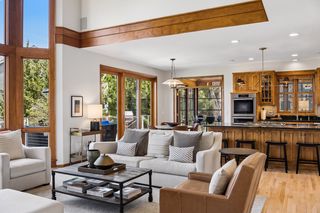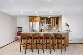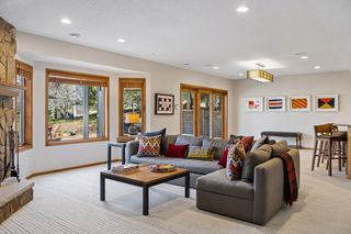Take in the games or mingle with friends in the finished walk-out lower level. Everything you need to host – wet bar, refrigerator, dishwasher, and plenty of space to store the snacks – is ready for you. There is space for the comfy sectional plus pool/game table to enjoy while taking in all the games on the multi-TV media wall. A 5th bedroom with hall bath makes hosting overnight guests both private and easy.