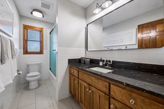 Looking in on loved ones is nearby – 3 additional bedrooms with new carpet and lighting – on the upper level. The hall bath has heated floors, tile tub/shower surround, new granite vanity tops, lighting and plenty of storage. Giggles and water fights are all a part of the routine.