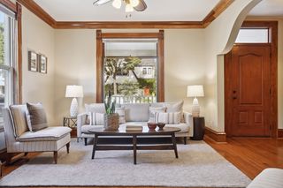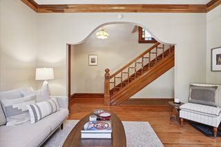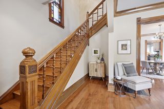 A perfect mixture of today's design updates and impressively maintained period details abound in this 2+ story, 2,600+ square foot home. The ideal main floor layout includes a dramatic foyer with a detailed front staircase and stained-glass window, sun-filled living room with wood-burning fireplace, separate formal dining room, bedroom or office, large updated kitchen with walk-in pantry, and seamless family room addition, all with shining oak hardwoods and dramatic 10-foot ceilings. New, energy-efficient sliding glass door leads to the private backyard with new sod and an oversized 2+car garage. 4 bedrooms on the second level include a primary bedroom with 7 x 10 walk-in closet. The third story is a completely open, sprawling amusement room or second family room. This home is move-in ready with up-to-date mechanicals, maintenance-free siding, ample room for storage, and brimming with charm. Located minutes from DT Minneapolis, Seward Friendship Co-op, parks, breweries and restaurants!