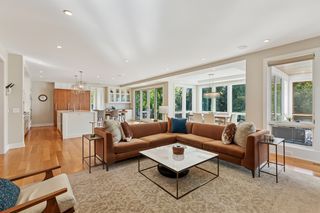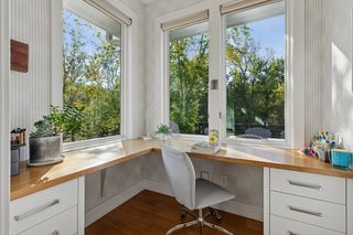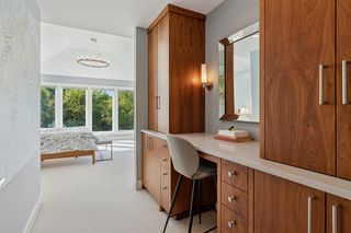 Upstairs, the owner’s suite is a peaceful retreat with vaulted ceilings, exquisite wallpaper accents, and views that make you feel suspended among the trees. Additional highlights include four bedrooms on the upper level with new wool carpeting, a bright family room with a wet bar on the lower level, new mechanical systems, new roof and some new windows, a comprehensive security system with surveillance cameras, and a new Sonos whole-home audio system with seven zones.