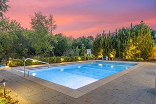 The professionally landscaped yard has been completely reimagined with lush plantings, stone pathways, extensive hardscaping, and an abundance of new trees. The walkout lower level opens directly to the heated pool, hot tub, sauna, and brand-new outdoor kitchen — creating a resort-like setting ideal for entertaining or unwinding in privacy.