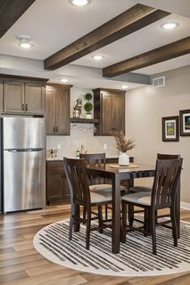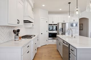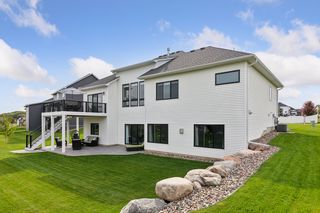 Experience refined main-level living in this beautifully designed home set on a private lot at the end of a low-traffic street, bordered by peaceful country views. From the moment you step inside, you’ll appreciate the thoughtful layout, bright open spaces, and modern finishes designed for both entertaining and everyday comfort. Large windows on both levels flood the home with natural light, highlighting the hand-scraped birch hardwood floors on the main level and gleaming granite countertops throughout. In the heart of the home, the vaulted great room is a stunning focal point, featuring a stone and shiplap surround gas fireplace that creates warmth and character next to the gourmet kitchen, where a generous center island, walk-in pantry, double wall ovens, and gas cooktop can be checked off your list. Just beyond, the spacious informal dining area includes a built-in buffet and easy access to the maintenance-free deck with a drink rail and staircase—perfect for grilling, relaxing, or hosting while enjoying serene backyard views. Also be pleased to find three bedrooms and two full baths on the main level, including the large Owner’s Suite with a walk-in closet and private bath retreat, not to mention a well-appointed laundry room and mudroom just off the insulated four-car attached garage. For the entertainer, the walkout lower level is a dream come true with its stunning family room featuring a second stone surround gas fireplace, wet bar/kitchenette with open dining space, and a game area, where you can step outside to the impressive stamped concrete patio. With two additional bedrooms and a full bath, this level is also ideal for multi-generational living and provides options for an office, exercise or hobby room. Located just 1-2 miles from Cub Foods, Heritage Library, and vibrant downtown Lakeville with its restaurants and coffee shops, this home also offers convenient access to schools and I-35 in under 10 minutes. Set in a welcoming, active neighborhood, this exceptional property blends comfort, style, and location into one remarkable opportunity.