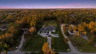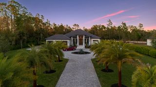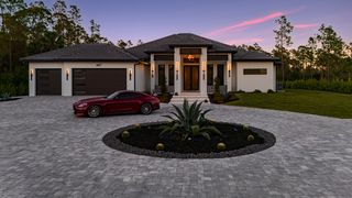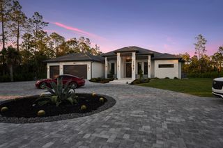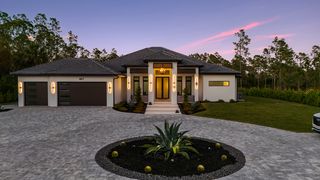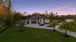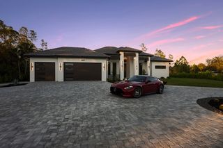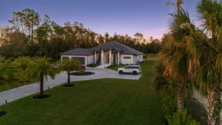 The three-car garage with epoxy floors adds practicality to this meticulously crafted property. Circular paver driveway with additional side parking. IMPACT windows and doors. NO Flood Insurance Required. Located on 100% upland and 95% cleared land in Golden Gate Estates, this estate offers privacy and tranquility, while still being conveniently close to Naples’ amenities.